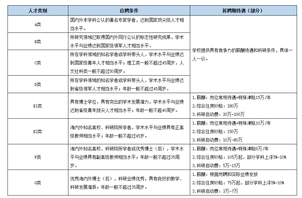 四、应聘条件和引进待遇(详见学校招聘公告)