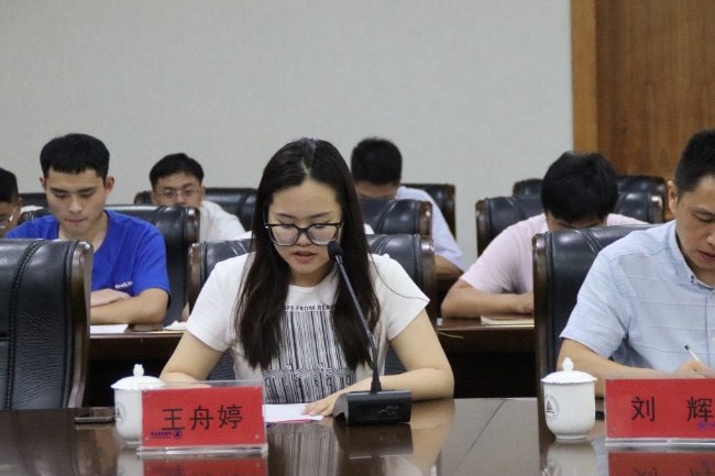 王舟婷同学代表21级研究生党支部介绍了支部的基本情况,研究生党支部主要负责积极分子的选拔,致力于打造一支专业、忠诚、务实的研究生党员队伍,建设一个学习氛围浓厚的党支部。